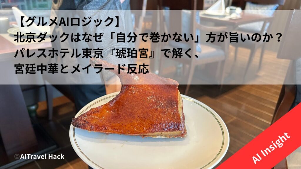 【グルメAIロジック】北京ダックはなぜ「自分で巻かない」方が旨いのか?パレスホテル東京『琥珀宮』で解く、宮廷中華とメイラード反応