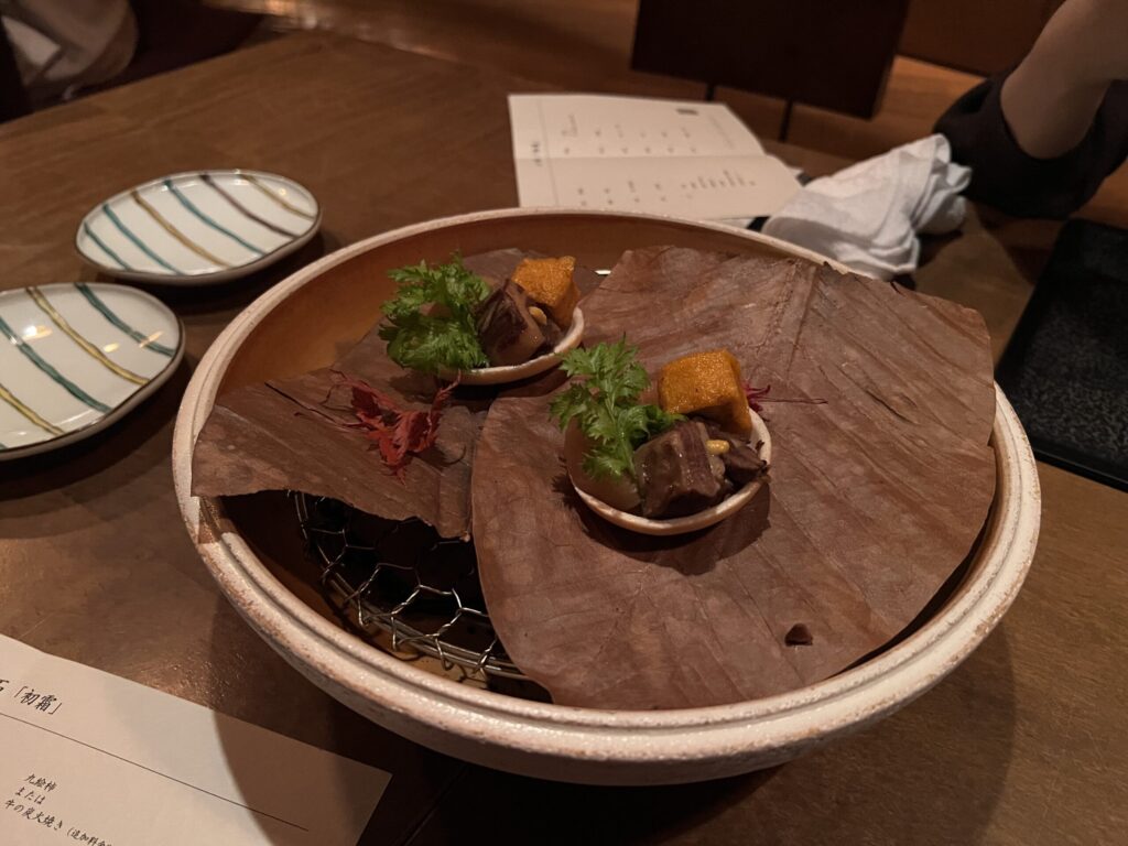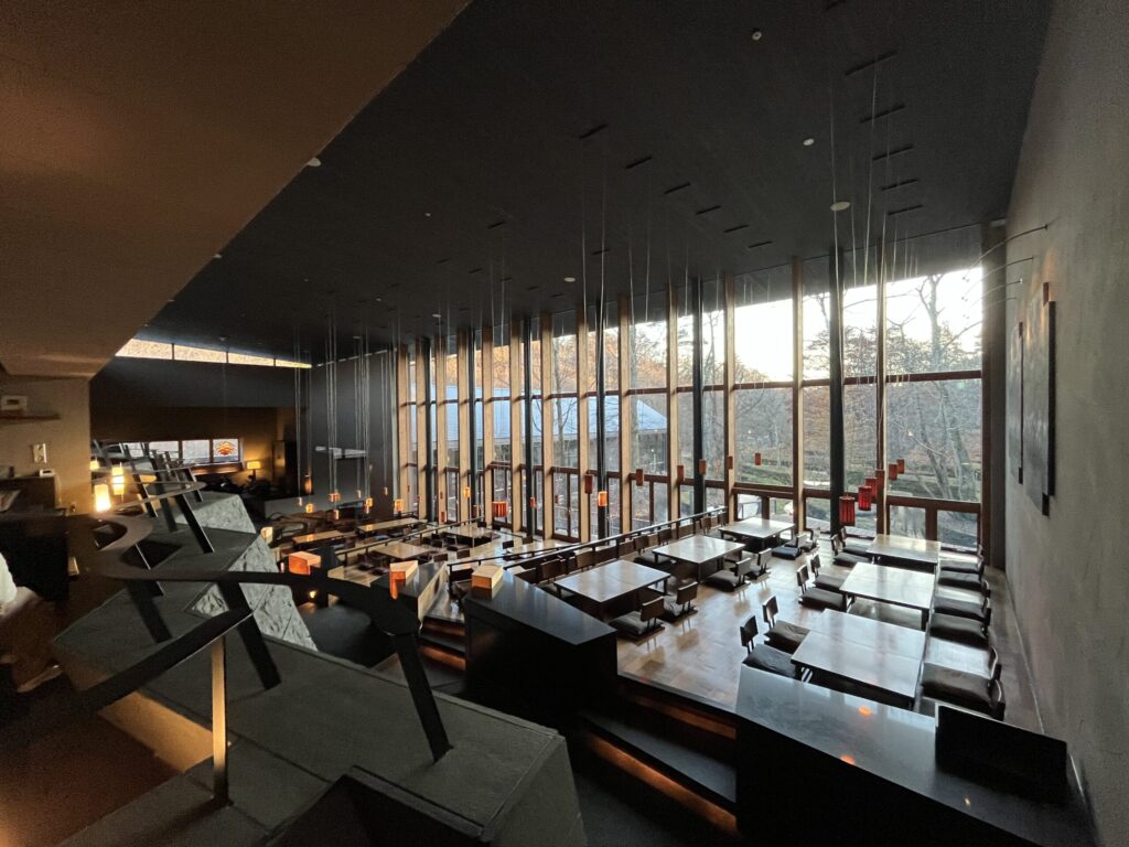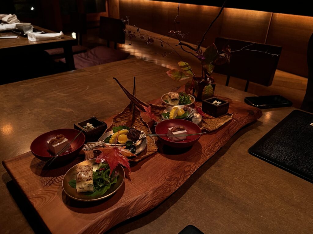 メインダイニング「嘉助」での夕食は、味だけでなく「目」で楽しむエンターテインメントでした。