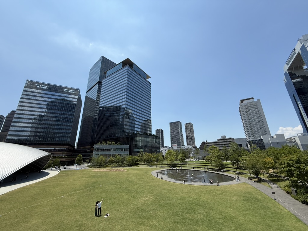 特筆すべきは、ホテルの目の前に広がる広大な「うめきた公園(芝生エリア)」です。 実は今回、こんな過ごし方をしました。