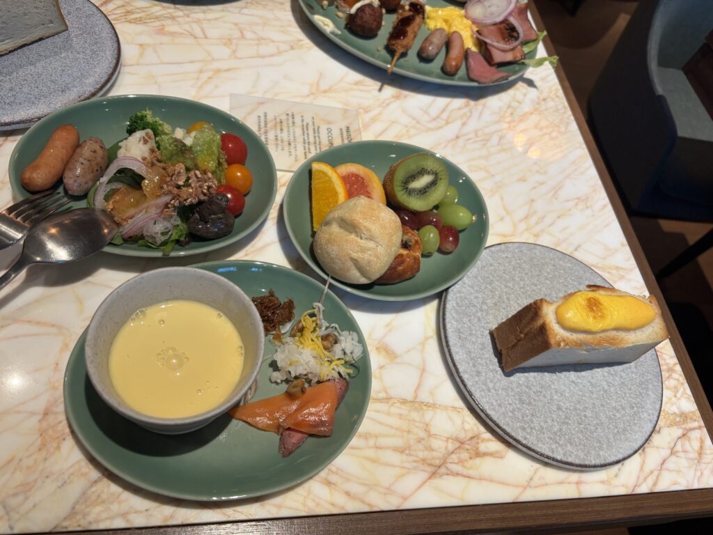 ふわふわのパンに、注文してから作られる温かい卵。 これが絶品でした。 さらに、食後のコーヒーはバリスタが一杯ずつ淹れてくれて、なんとテイクアウト用のカップに入れて部屋に持ち帰ることも可能。 この「ちょっとした気遣い」が、朝の満足度を爆上げしてくれます。