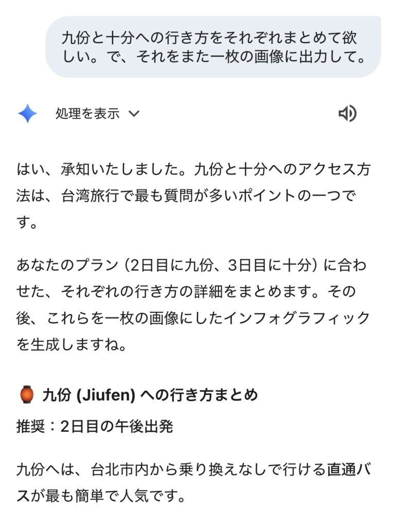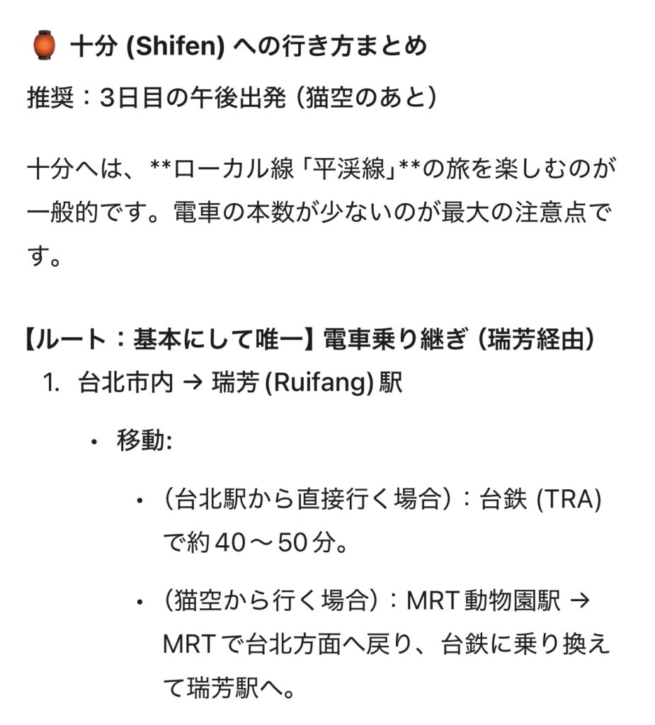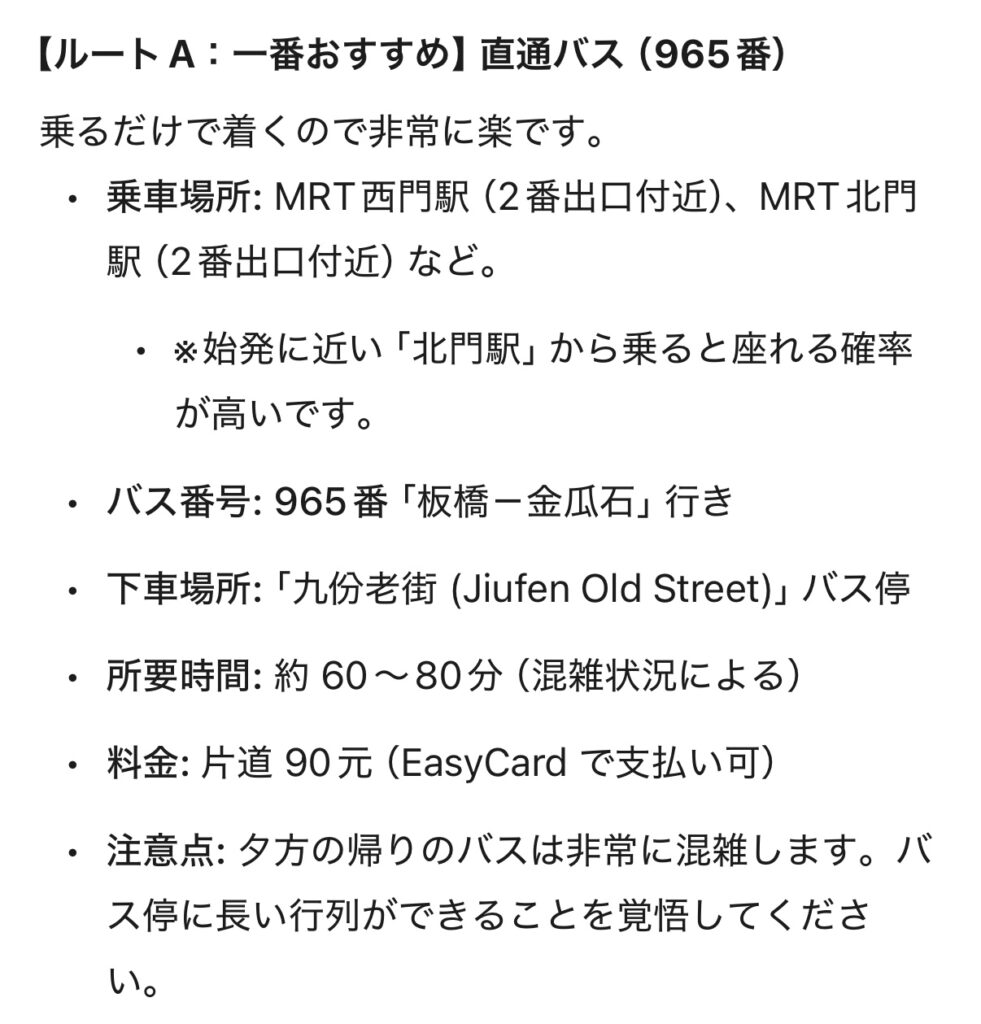 台北から九份・十分への移動。Geminiに行き方を聞いてみた。