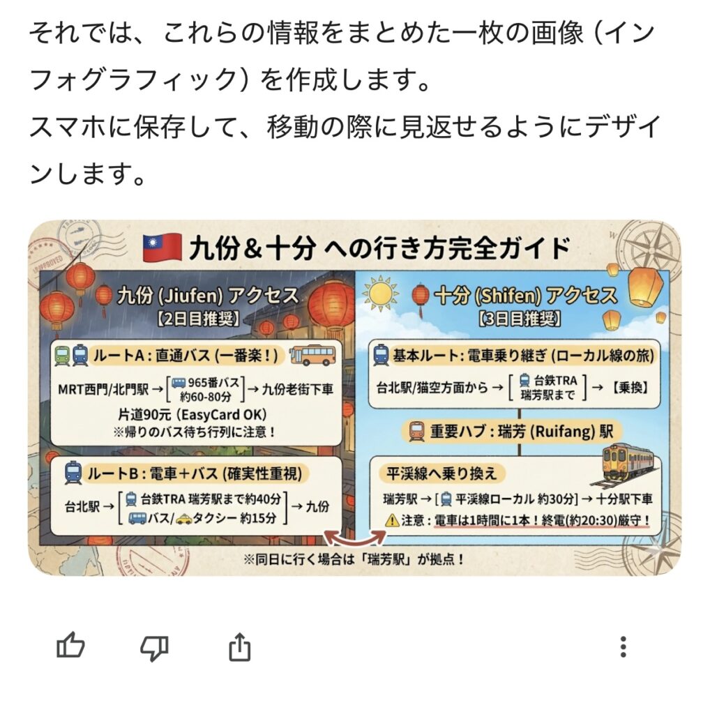 今回は、私がGeminiと共に挑んだ九份・十分への移動の記録を公開します。AIが描いた「理想」と、私が味わった「絶望」。その答え合わせから見えてきた、後悔しないための「真の正解ルート」を包み隠さずお伝えします。