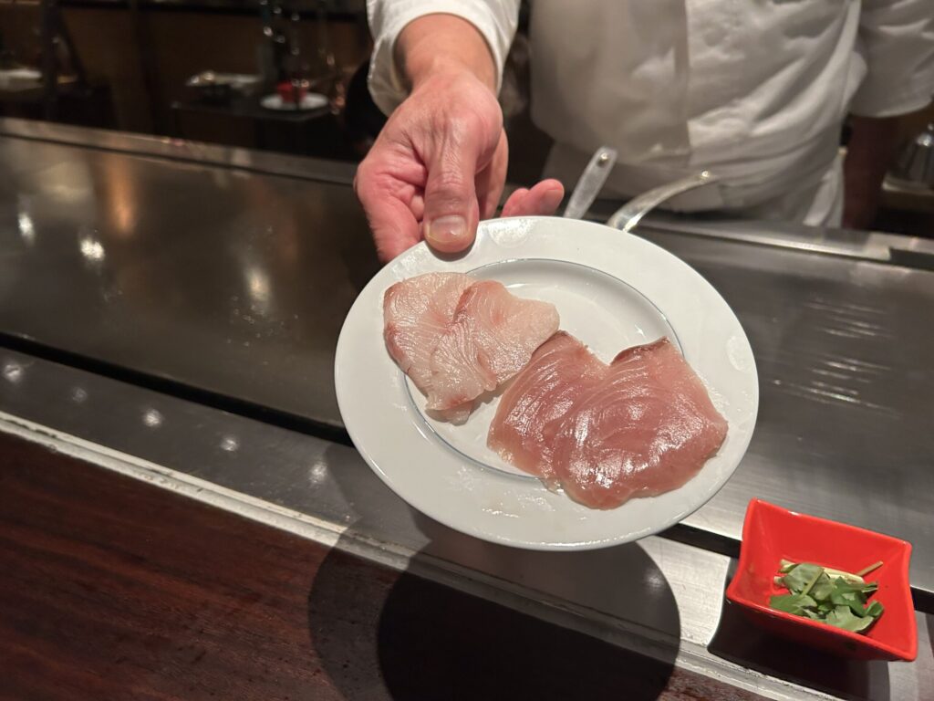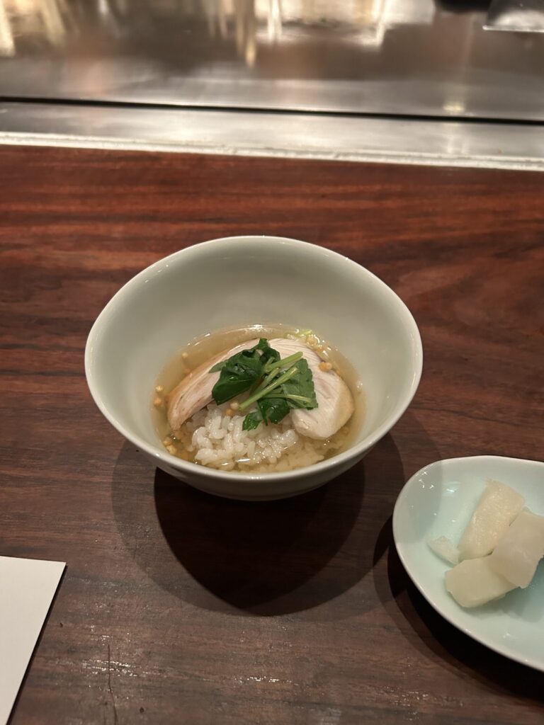 鉄板焼きの〆といえば「ガーリックライス」が定石だ。しかし、今回はコースの選択肢にあった「鯛茶漬け」を選んでみた。 これが、大正解だった。