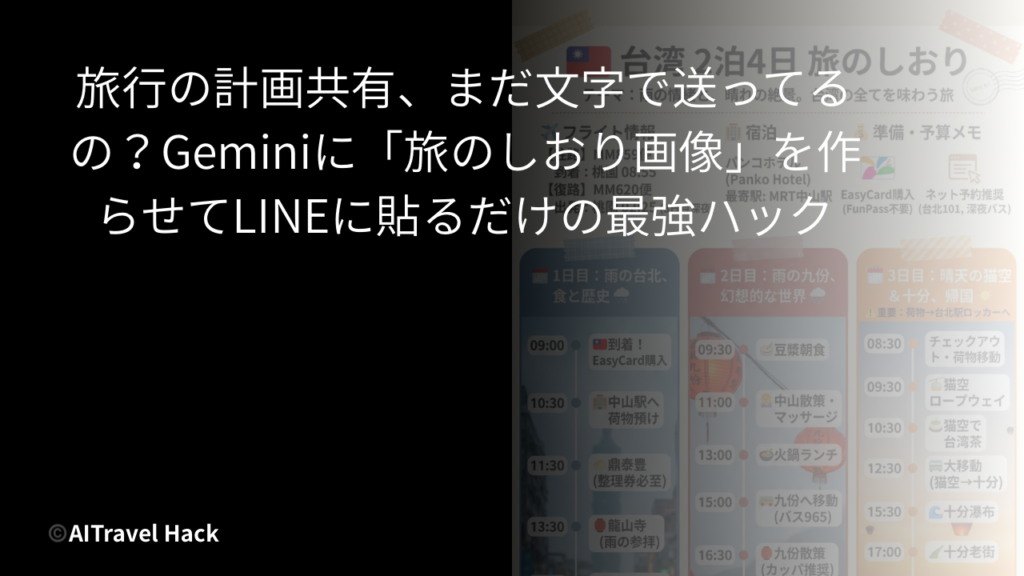 【台湾】旅行の計画共有、まだ文字で送ってるの?Geminiに「旅のしおり画像」を作らせてLINEに貼るだけの最強ハック