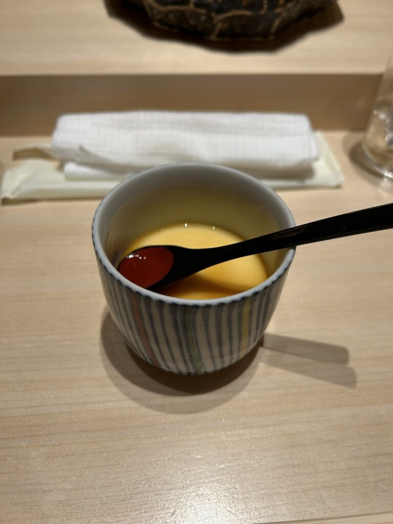 白子の茶碗蒸し 熱々の状態で登場。私は白子が得意な方ではないが、これは別格だった。臭みは皆無で、クリーミーなコクだけが凝縮されている。