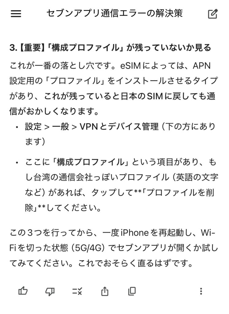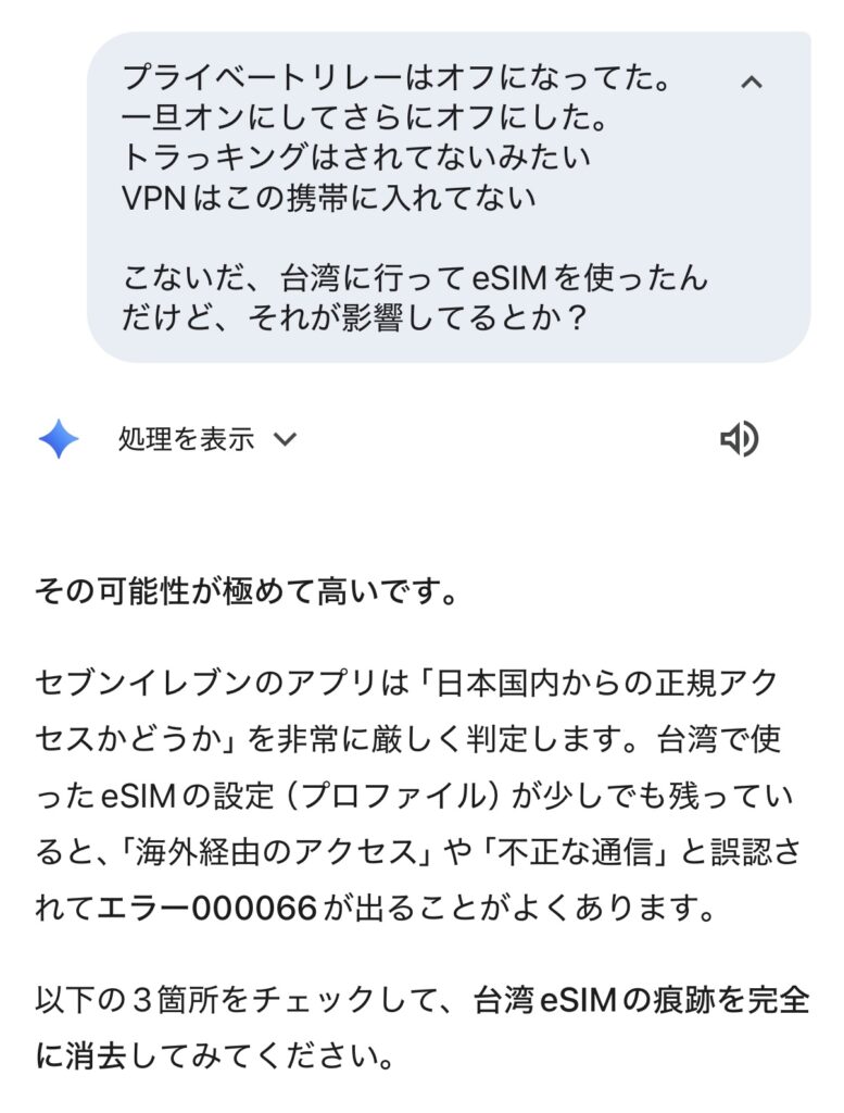 【台湾】【解決】帰国後に「セブンアプリ」だけ起動しない!?犯人は海外eSIMだった…Geminiと突き止めた意外な解決策