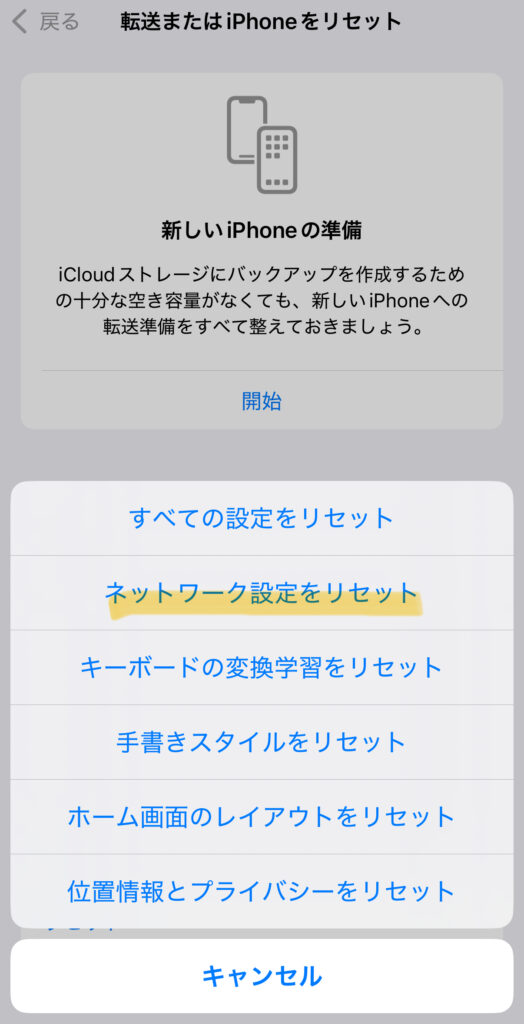 【超重要】一番上の「ネットワーク設定をリセット」を選択